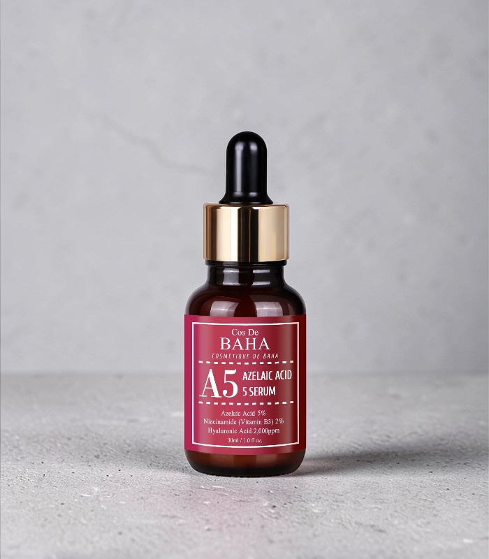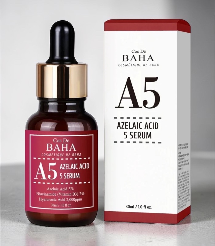 The COS DE BAHA Azelaic Acid 5% Serum is a gentle treatment that helps improve skin tone and reduce redness. It is designed for daily use and works well for sensitive or problem skin.
