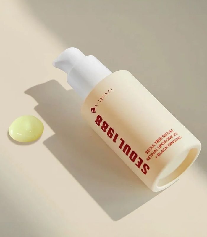 The K-SECRET – SEOUL 1988 Serum is a concentrated serum designed to support smoother-looking skin and improved firmness. Moreover, its lightweight texture absorbs quickly without heaviness. Because the formula combines retinal liposome technology with black ginseng, it helps refine skin texture while maintaining comfort.