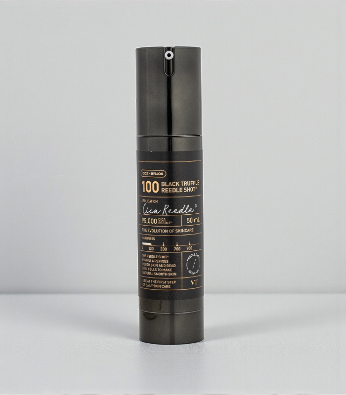 With regular use, this nourishing serum helps improve hydration levels and supports firmer-looking skin. VT Cosmetics Black Truffle Reedle Shot 100 promotes smoother texture and enhanced radiance without heaviness. The complexion appears more balanced, refined, and luminous.